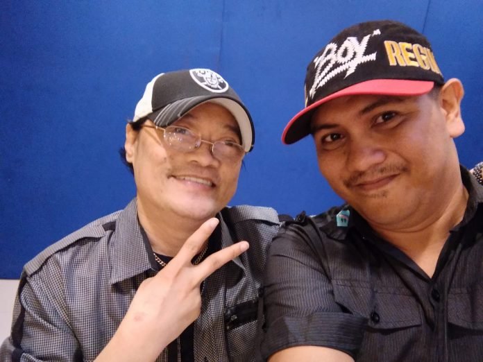 Singer April Boy Regino with his avid journalist fan Armando Fenequito Jr. during the Friday night media "Get together" with President Rodrigo Duterte at the Matina Enclaves.-Photo: Armand B. Fenequito Jr.