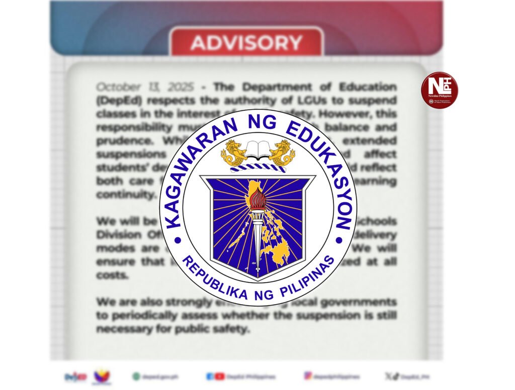 MANILA (October 16) — Department of Education (DepEd) has cautioned local government units (LGUs) against extended suspension of face-to-face classes, warning that it could disrupt students’ learning and development.