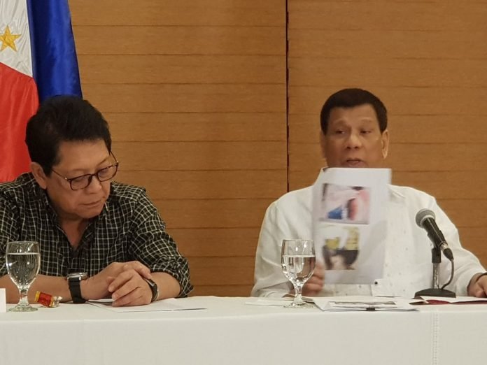 Presidnt Rodrigo R. Duterte showing photos of maltreated OFWs in Kuwait.-Newsline.ph