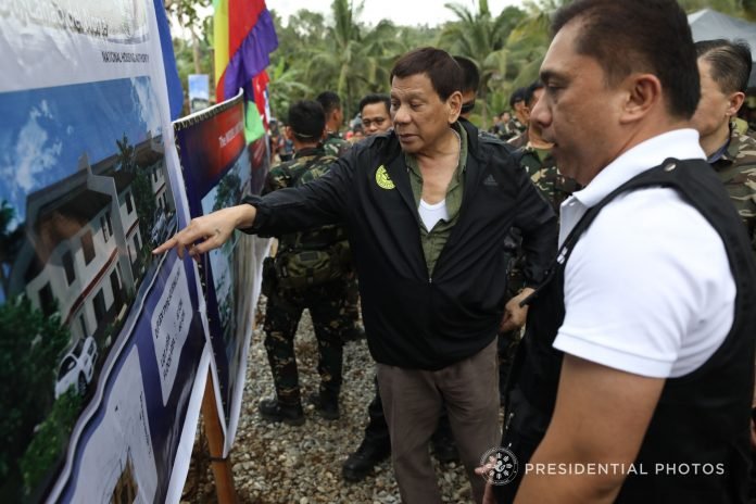 Duterte lauded Escalada for the fast establishment of the temporary shelters for the displaced residents of Marawi, in the Village of Sagonsongan, Marawi City.