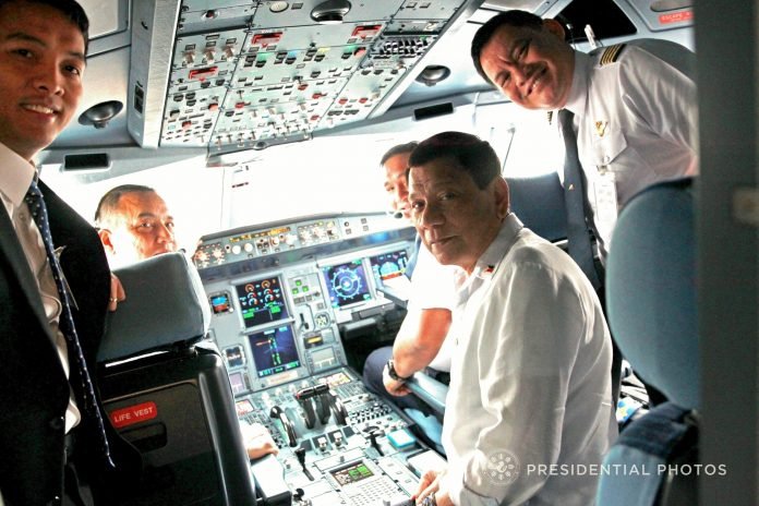 Duterte inside PAL By NewsLine Philippines - January 25, 2018 President Rodrigo Roa Duterte joins the pilots inside the cockpit of Philippine Airlines chartered flight PR001 as they head to New Delhi, India on January 24, 2018. Robinson NiƱal Jr./Presidential photo