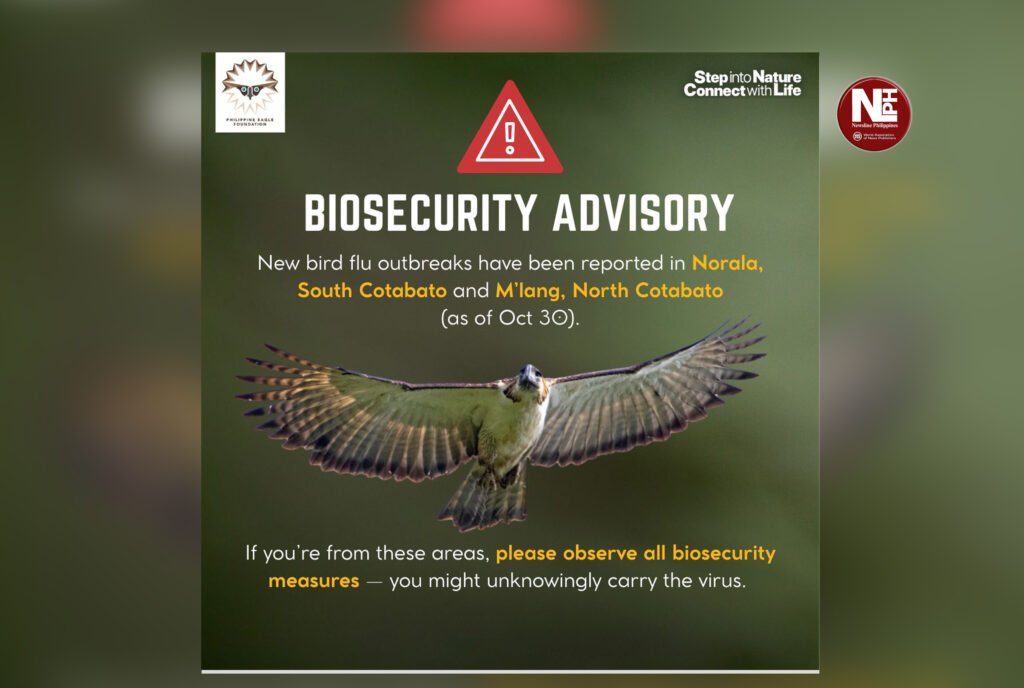 DAVAO CITY (November 9) — The Philippine Eagle Foundation (PEF) has urged guests from Norala, South Cotabato, and M’lang, North Cotabato to postpone their visits following confirmed avian flu outbreaks in the area.