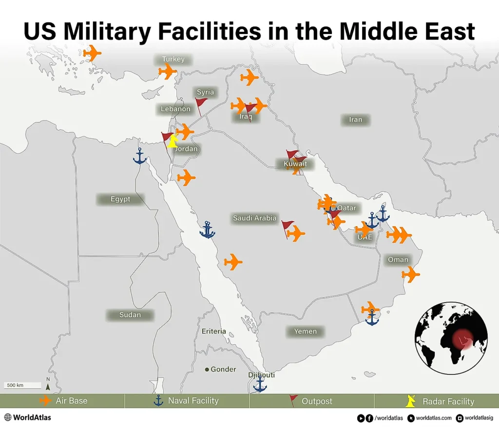 In response, Iran launched missiles and drones toward Israel and U.S. military installations across the Gulf region. Strikes or attempted strikes were reported near American bases in Qatar, Kuwait, Bahrain, and the United Arab Emirates.