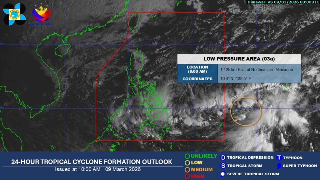 BUTUAN CITY (March 9) – Moderate to heavy rains triggered by the trough of a Low-Pressure Area (LPA) continued to drench large parts of the Caraga Region from Sunday afternoon through Monday, prompting class suspensions and heightened flood monitoring in several provinces.