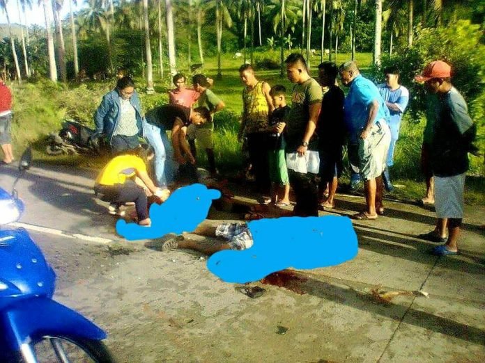 DAKBAYAN SA TAGBILARAN, BOHOL—- Magtutudlo ug driver sa motor patay human aksidenteng natumbahan og punoan sa lubi sa nasudnong dalan didto sa barangay Poblacion 2, lungsod sa Mabini niadtong Enero 5, 2017.