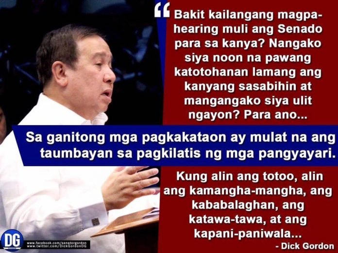 Gordon, who chairs the Senate committee on Justice and Human Rights, said he would no longer waste the Senate’s time investigating Lascañas after the latter flip-flopped on his claims on the DDS.